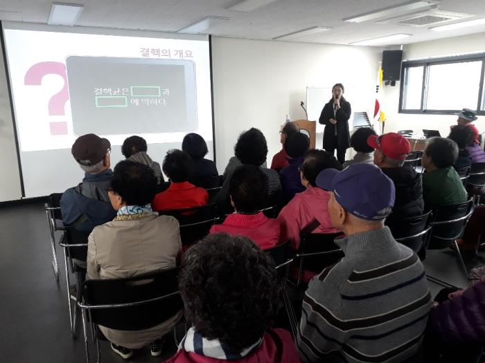 | 군포시니어클럽 대상 결핵 예방 교육 사진. |