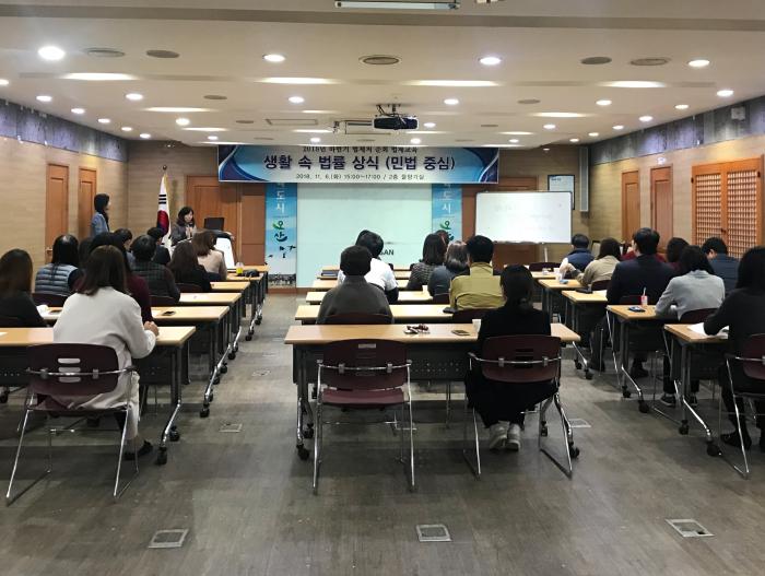 강의를 맡은 법제처 박수연 사무관은 “민법 중심의 생활 속 법률 상식”을 주제로 하여 민법 통칙, 권리의 주체 ․ 객체, 법률행위 등 사법 관계의 기본법인 민법의 기초 개념과 중요 판례 등을 설명하였다.