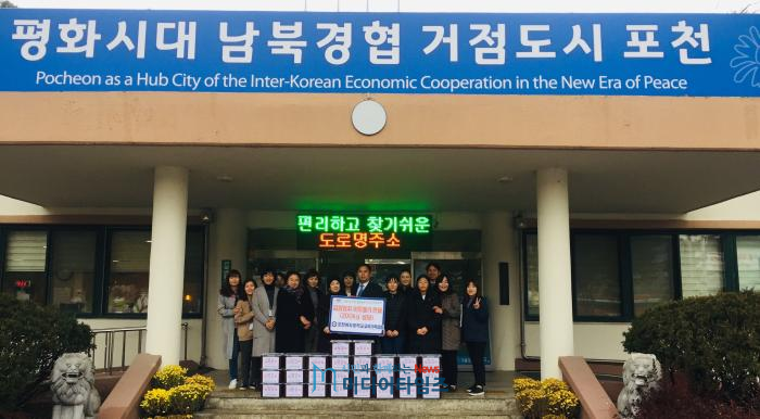 포천여자중학교 학생들이 9일 어려운 이웃들을 위해 고사리 손으로 직접 담근 김장김치 200kg을 신북 행정복지센터(면장 양영근)에 전달했다.