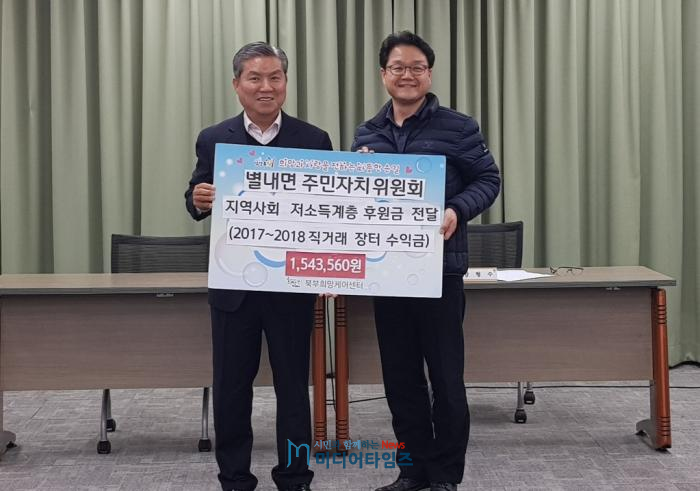 이번 이웃돕기 성금은 지난해와 올해 별내면 주민지치위원회의 벼룩시장과 직거래장터 수익금으로 마련됐다.