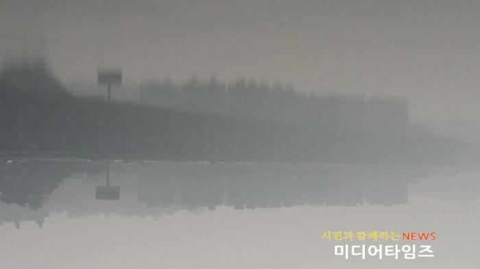 | 미세먼지가 심한 날 한강대교에서 흑석동 일대를 바라본 사진. |