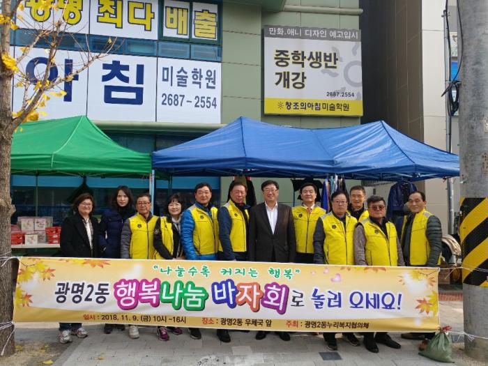 광명시 광명2동 누리복지협의체(위원장 박세용)는 지난 9일 광명2동 우체국 앞에서 어려운 이웃을 돕기 위한 ‘행복나눔 바자회’를 개최했다.