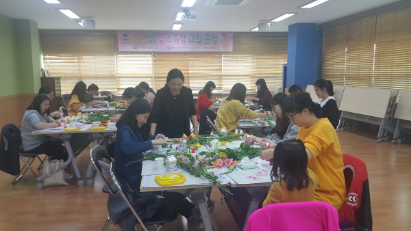 임산부 맘스 특강 교실은 전문 강사를 초빙하여 임신으로 인한 두려움, 스트레스, 불안 우울 등을 해소하기 위해 태어날 아기를 생각하며 예쁜 그림을 그리고 여러 가지 다양한 꽃으로 소원하고 바라는 것을 직접 만들기로 표현해, 심리적 위안을 얻을 수 있도록 예비 엄마들에게 도움을 줄 수 있는 프로그램으로 진행됐다.