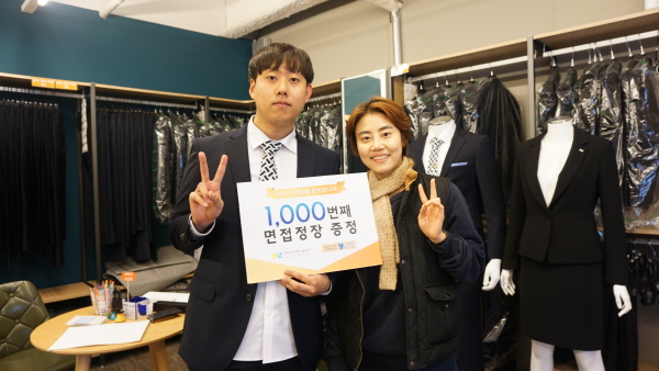 김씨는 “1000번째 주인공이 돼 면접이 잘 풀릴 것 같은 좋은 예감이 든다”며 “면접 때 입을 정장 가격이 비싸 부담을 많이 느꼈는데, 청나래에서 무료로 대여할 수 있어 많은 도움이 된다"고 말했다.