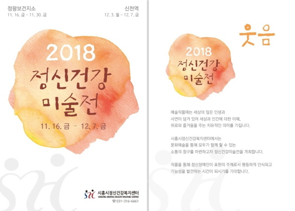 시흥시보건소는 오는 16일부터 내달 7일까지 정왕보건지소 카페 갤러리와 신천역사 내에서 2018 정신건강미술전 ‘웃음’을 개최한다.