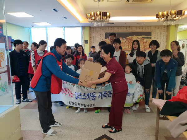 한편, 알프스하동 가족봉사단은 더불어 사는 공동체 활동에 기여하고 지역을 사랑하는 가족과 함께 건전한 여가를 보낼 수 있도록 매달 셋째 주 지역사회에 다양한 봉사활동을 실천하고 있다.