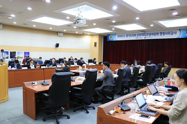 경기도의회 문화체육관광위원회는 13일 경기관광공사 회의실에서 경기관광공사 소관업무에 대한 2018년도 행정사무감사를 실시했다.