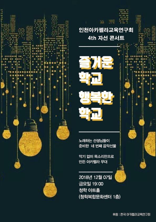 인천아카펠라교육연구회는 오는 12월 7일 오후 7시 인천 청학아트홀에서 아이들을 위한 네 번째 자선 무료 콘서트를 개최한다.
