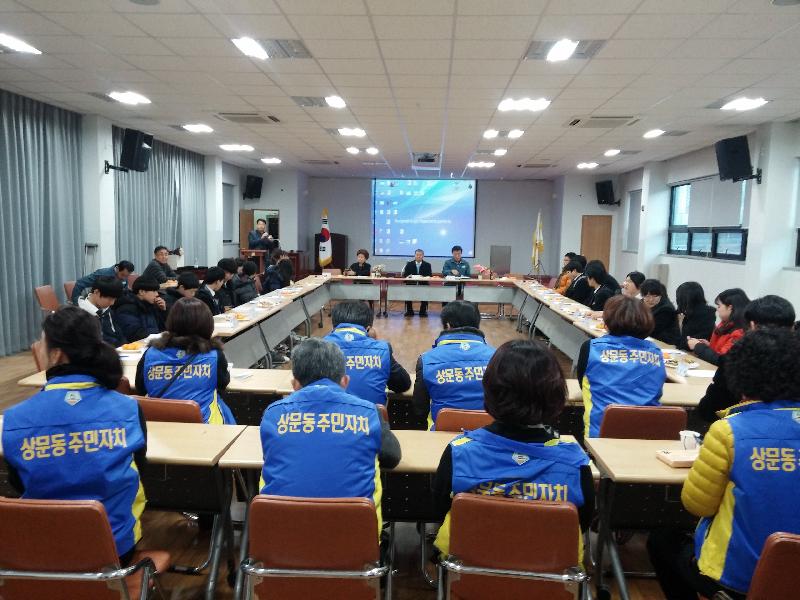 상문동 주민자치위원회(위원장 유봉열)는 지난 16일 상문동 주민센터 3층 대회의실에서 상문고와 고현중의 추천을 받은 학생들을 초청해 청소년주민자치위원 임시회의를 개최했다.