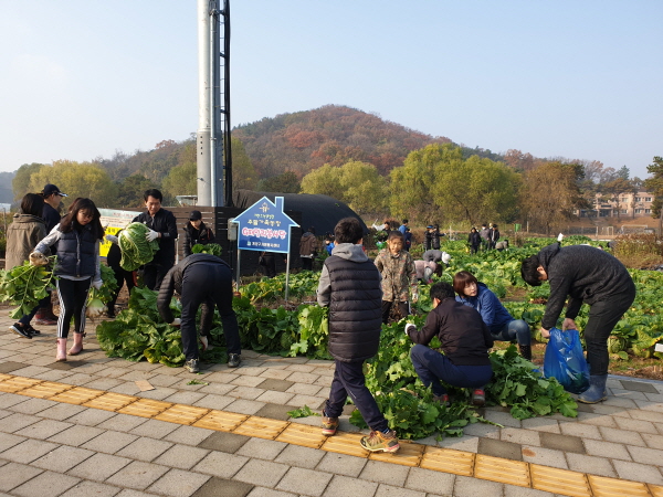 이날 G패밀리봉사단은 14가족이 하나가 되어 퇴비작업, 모종심기를 시작으로 배추벌레잡기, 잡초제거, 물주기 등 함께 땀 흘리며 경작한 배추 1,200포기와 무 700여 개를 수확하여 관내 어려운 이웃을 위하여 계양구푸드마켓과 계양푸른빛재가노인지원서비스센터에 전달했다.