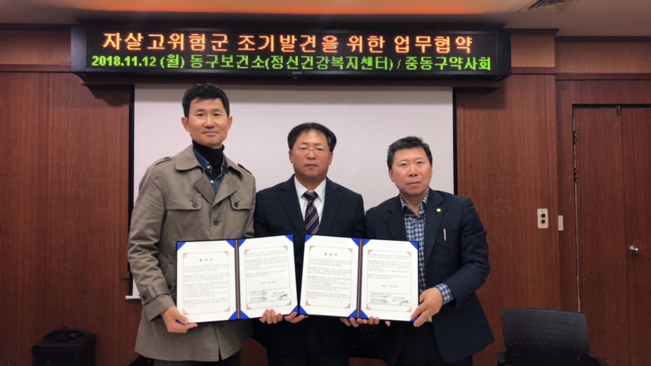 인천 동구보건소 정신건강복지센터는 지난 12일, 인천 중·동구약사회와 생명존중 및 자살예방 연계 체계구축을 위한 업무 협약식을 가졌다.