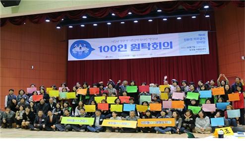 시흥시학교급식지원센터는 친환경 의무급식 정책 시행 10년을 평가하고 다가올 10년의 방향성을 논의하기 위해 지난 7일 능곡어울림센터에서 100인 원탁회의를 개최했다. 이번 원탁회의에는 그간의 정책을 함께 만들어온 학교 관계자, 지역의 과채류, 쌀, 생산자, 학부모, 시민, 시의원, 시청과 교육청 공무원까지 총 130여명이 참석해 의견을 교환했다.