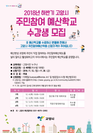 고양시, ‘2018 하반기 주민참여 예산학교’ 수강생 모집