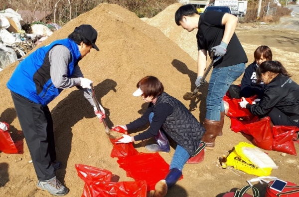 남양주시 화도·수동 행정복지센터는 지난 13일 겨울철 설해 예방과 마을 빙판길 안전을 위해 모래주머니 1천여개를 제작했다. 이날 모래주머니 제작에는 자율방재단, 제설봉사단원들 20여명이 참여했다.