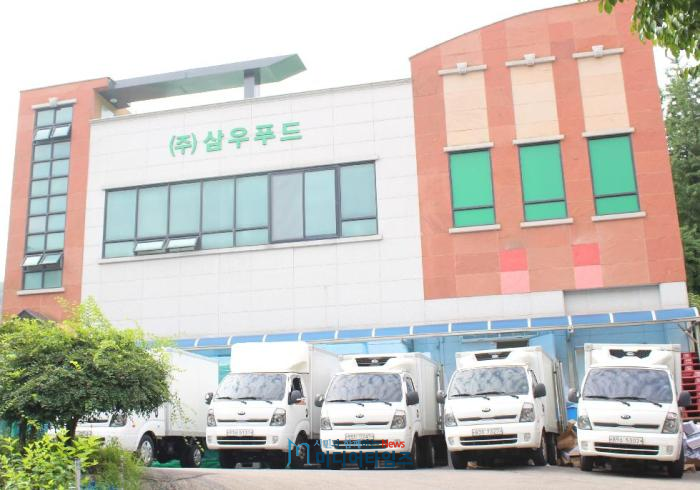 | 문학산 자락에 자리 잡은 정갈한 식품공장 (주)삼우푸드 전경 사진. |