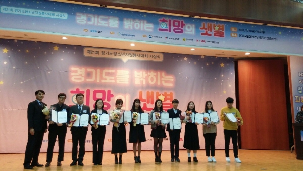 1998년부터 시작된 경기도청소년자원봉사대회는 경기도가 주최, 경기도청소년활동진흥센터 주관하며, 청소년자원봉사활동에 대한 사회적 분위기를 고취시키고 청소년의 자발적인 참여활동을 유도하고 상기시키기 위해 매년 실시하고 있다. 올해는 2017년 9월부터 2018년 8월까지의 봉사활동 내용을 청소년 개인, 동아리, 지도자, 터전 4개 부분으로 심사 선발했으며 동아리부문은 14개 동아리팀이 수상했다.