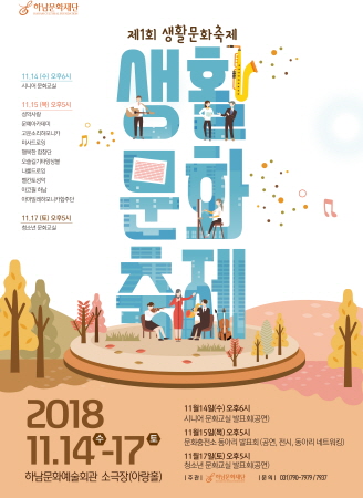 재단법인 하남문화재단은 14일부터 오는 17일까지 4일간 하남문화예술회관 소극장에서 제1회 생활문화축제를 개최한다. 이번 축제는 하남문화재단이 운영하고 있는 ‘문화충전소’ 소속 동아리 10개 단체와 2개 교육프로그램의 발표회로 구성됐다. 지난 1년간의 동아리활동 결실을 선보이는 무대로, 성악공연, 시낭송, 악기연주, 그림 전시 연극, 민요 등을 선보일 예정이다.