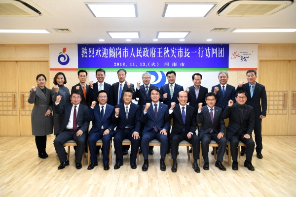 하남시는 지난 13일 중국 흑룡강성 학강시 인민정부 경제사절단 등 9명이 방문 했다고 밝혔다. 이날 시청 상황실에서 김상호 시장 및 관계 공직자와 기업인 대표로 백남홍 회장, 한상영 회장, 박종근 기업인협의회장 등 10명은 방문단을 접견했다.