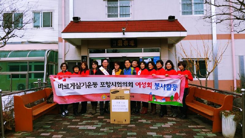 바르게살기운동 포항시여성회(회장 이해옥)는 17일 장기면에 소재한 노인요양시설인 유락원을 방문해 세탁기를 기증하고 봉사활동을 펼쳤다. 이날 행사에는 황인식 바르게살기운동 포항시협의회장을 비롯한 임원들이 참석한 가운데, 세탁기 전달식을 갖고 어르신들을 위한 식사도우미 활동도 병행했다. 바르게살기운동 포항시여성회는 50여명의 회원들로 구성되어 있으며, 평소에도 소외계층에 대한 봉사활동을 펼치는 등 왕성한 활동을 하고 있다. 지난 11월에는 어려운 가정 30세대에 대해 소고기를 전달한 바 있으며, 나눔의 손길을 전파하는데 회원 모두가 한마음으로 적극적인 참여를 하고 있다. 이해옥 회장은 “앞으로도 회원들과 뜻을 같이해 지역사회에 보탬에 되는 단체로 우뚝 설 수 있도록 최선을 다하겠다.”고 말했다.
