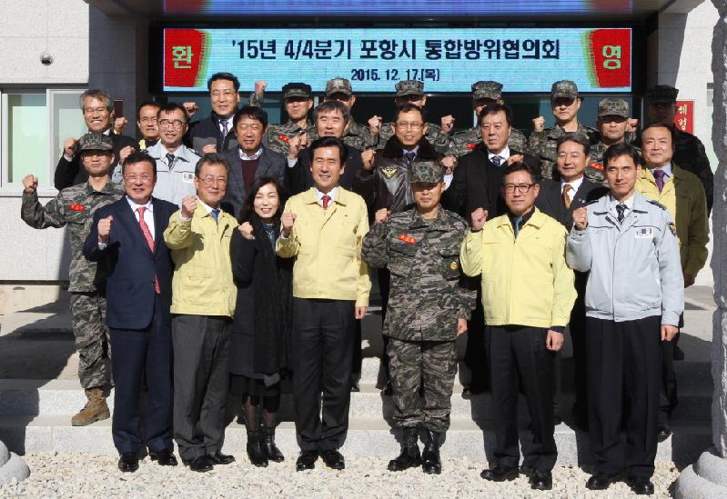 포항시 통합방위협의회(의장 이강덕)는 17일 해병대제1사단 회의실에서 최창룡 해병대제1사단장, 류필수 포항교육지원청교육장, 정은식 남부경찰서장, 오완석 북부경찰서장, 주경애 KBS포항방송국장 등 통합방위협의회 위원 21명이 참석한 가운데 열렸다. 이날 회의는 2015 국가중요시설 등 전방위 통합방위태세 확립을 위해