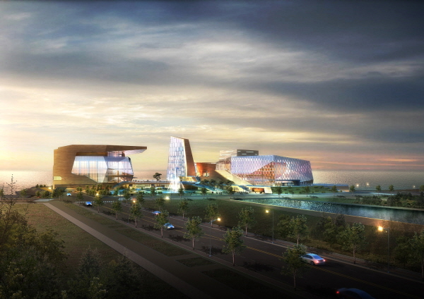 마에스트로가 지휘하는 손 모습에서 영감을 얻어 설계된 독특한 외관으로 인천의 새로운 랜드마크로 기대를 모으고 있다. 송도 서북쪽 바닷가에 위치해 바다를 품은 전망 또한 자랑거리이다.