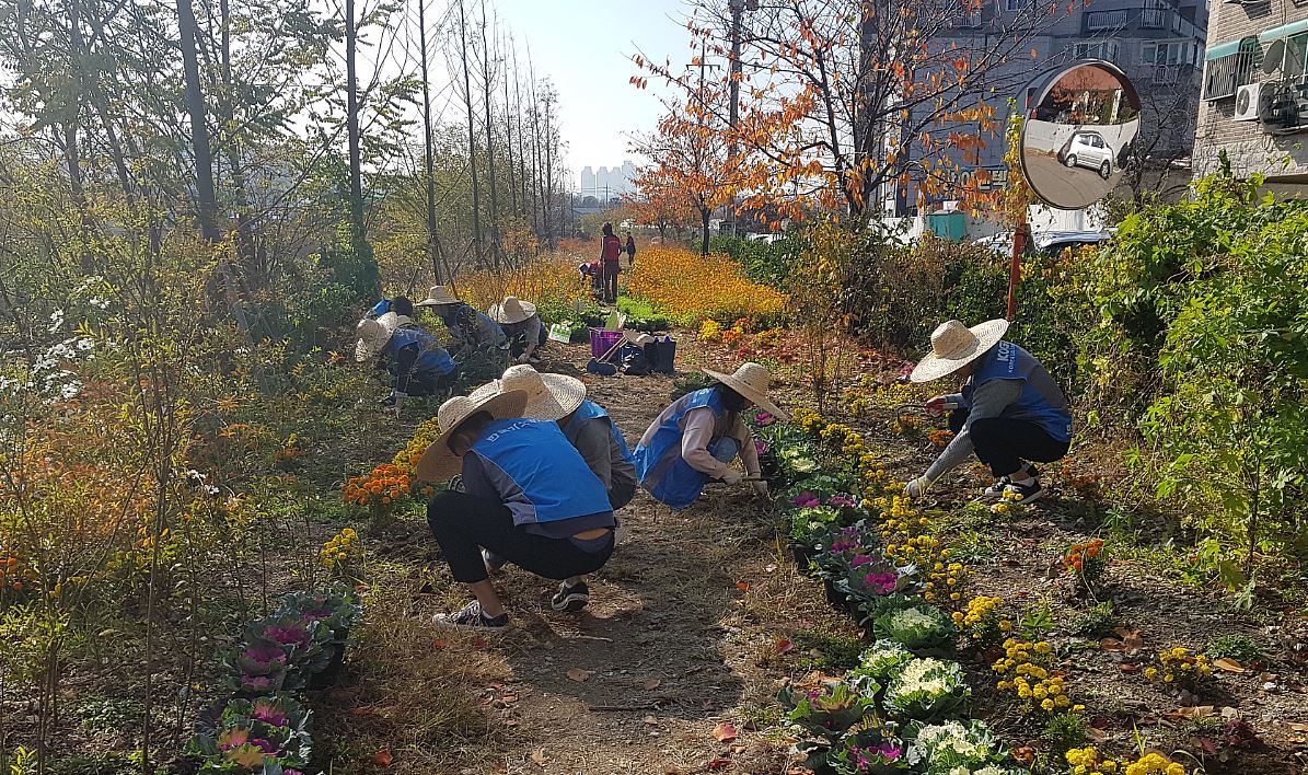 쌀쌀한 날씨에도 불구하고 6개 자원봉사단체 90여명이 참가했으며, 양배추 꽃, 보리 등 겨울 초화 1,300본을 식재 후 환경정화활동도 진행했다.