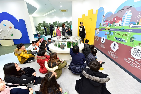2층 ‘지구를 위한 실천관’에는 탄소를 잡아라 풍력에너지 체험 우리집 에너지를 지켜라 등 터치식 시설을 마련했다. 또 누리교실에 내가 그린 물고기가 바다 속에서 헤엄치는 ‘라이브 스케치 영상’을 설치해 놀이와 체험으로 기후 변화와 환경의 중요성을 알 수 있게 했다.