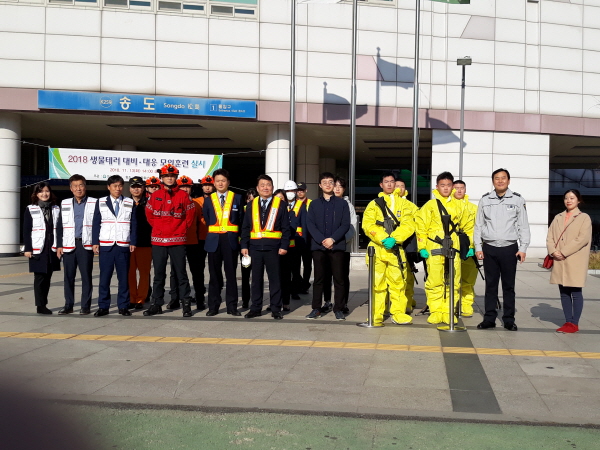수인선 송도역 내에서 생물테러로 의심되는 백색가루를 발견하고 승객이 송도역 고객지원실에 신고하는 상황으로 시작해 신고접수, 상황전파, 현장출동 및 통제, 다중독소탐지키트 검사, 환경검체 수거 및 검체이송 등의 과정을 실전과 같이 진행했다.
