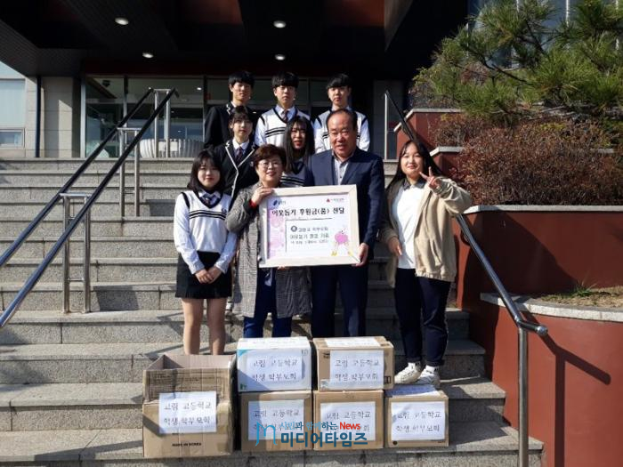 기탁한 성품은 고림고 학부모회가 재능기부 봉사활동의 일환으로 지난달 후원물품 만들기 행사를 열고 학생들과 함께 직접 만든 천연비누 300개, 방한용 목도리 넥워머 60개, 디퓨저 방향제 30개 등이다.