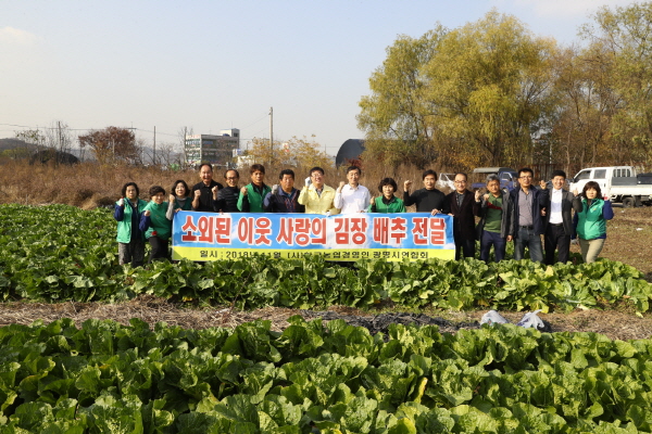 한국농업경영인 광명시연합회는 지난 14일 가학동 벌말마을에서 휴경지를 이용하여 수확한 배추 2,000포기를 새마을운동 광명시지회에 기탁했다. 이번에 기탁된 배추는 새마을운동 광명시지회가 18개동 행정복지센터에 전달해 이달 중 각 동의 ‘2018년 사랑의 김장 담가주기’ 행사에서 쓰일 예정이다.