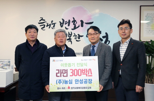 한편, 우석제 안성시장은 “기업에서 이웃사랑 실천에 나서 주셔서 감사드리며 기탁하신 라면은 어려운 분들에게 따뜻한 정으로 전달될 것”이라며 감사의 뜻을을 전했다.