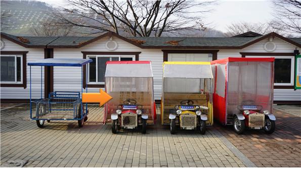 연천군시설관리공단 한탄강관광지에서는 숙박시설 청소 시 사용 되는 이불·수건 등의 운반용 손수레 3대를 불용처리 된 꼬마자동차를 활용하여 전동카트로 개조·사용하고 있어 화제가 되고 있다.