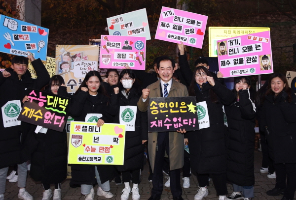 안병용 의정부시장은 관내 수능시험장을 찾아 선배들의 좋은 수능성적 결과를 기원하는 후배들과 함께 입실하는 수험생을 응원하고, 원활한 교통소통 및 질서유지를 위해 애쓰는 봉사자들을 격려했다.