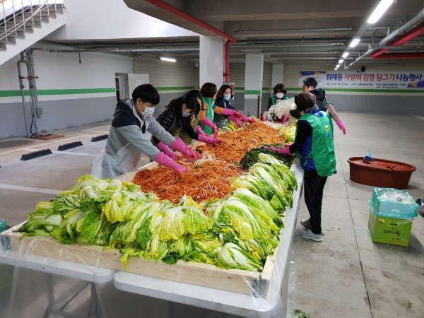 새마을회 선동 일원 텃밭에서 회원들이 직접 재배하고 수확한 배추 300여 포기에 사랑과 정성을 더하여 독거노인 및 어려운 이웃 50여 세대에 10kg씩 직접 방문 전달했다. 사랑의 김장나눔 행사는 매년 꾸준히 이어온 위례동 새마을협의회·부녀회의 대표적인 행사로 나눔의 행복을 실천해온 뜻깊은 행사다.