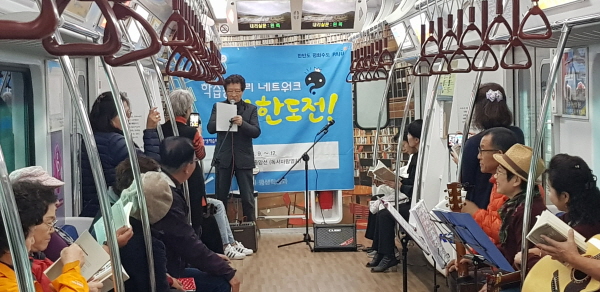 파주시는 2018년 신규 평생학습도시 지정 사업 중 하나로 ‘학습동아리 네트워크 무한도전’ 사업을 진행하고 있다. ‘학습동아리 네트워크 무한도전’은 경의중앙선 문산역에서 홍대입구역까지 60여분 동안 파주시 학습동아리와 경기도내의 학습동아리가 공연·체험 활동을 시민들과 함께하는 것이다.