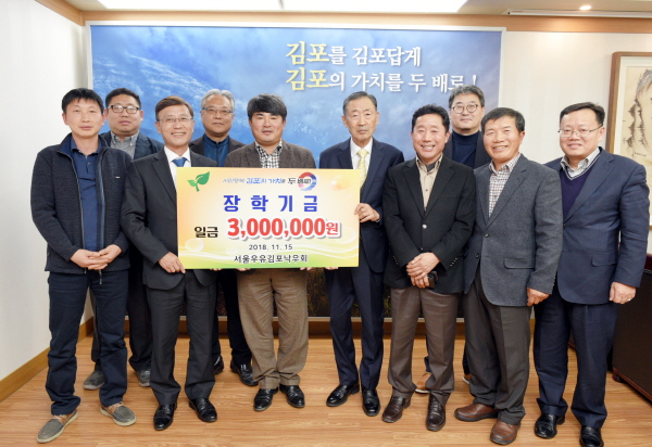 서울우유 김포낙우회와 태광화학은 지난 15일 김포시청을 방문해 정하영 시장과 접견을 갖고 김포시민장학회에 장학금으로 300만원과 1,000만원을 각각 기탁했다.
