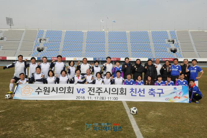 수원시의회(의장 조명자)는 17일 수원종합경기장에서 전주시의회와 친선 축구경기를 가졌다.