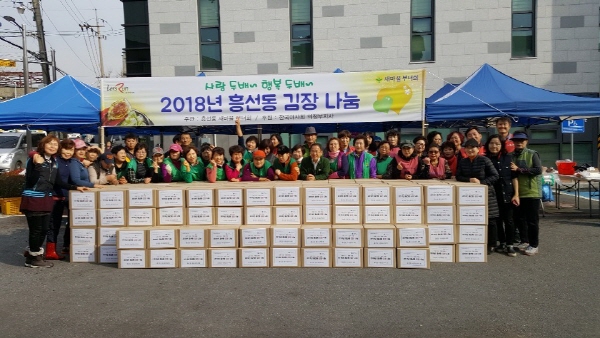 의정부시 흥선동 행정복지센터는 지난 15일 동절기를 맞아 흥선동 새마을부녀회의 주최로 소외계층에게 이웃사랑을 실천하고자 ‘2018년 사랑의 김장 나눔 행사’를 개최했다. 이번 행사는 매년 지속적으로 이웃을 돕고 있는‘한국마사회 의정부지사’에서 400만원을 후원하고 주민자치위원회 · 통장협의회 등 자생단체에서 50만원을 후원했다.