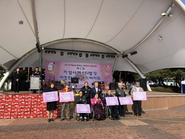 사) 경기도장애인복지회 안성시지부에서 주최하고 안성시중증장애인자립생활센터와 사)한국식생활문화협회 안성시지부 주관으로 지난 14일 내혜홀 광장에서 작은거인 예술단과 함께하는 장애인인식 개선을 위한 “제1회 끼 발사 페스티벌 및 따뜻한 겨울나기 바자회”를 성황리에 개최했다