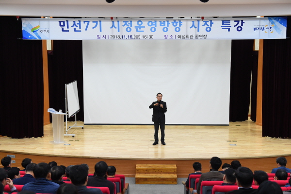 이항진 여주시장은 지난 16일 오후 4시 30분부터 6시까지 여성회관 공연장에서 여주시청 모든 팀장급 이상 간부공무원을 대상으로 특강을 실시했다.