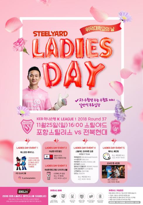포항은 이번 홈경기를 ‘레이디스 데이’로 정하고 이름에 걸맞게 여성팬을 위한 다양한 혜택과 이벤트를 준비했다.