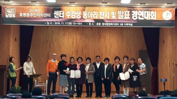 남양주시 호평동 주민자치위원회는 지난 17일 남양주시 호평동 주민자치센터 다목적공연장에서 수강생 및 지역 주민등 약300여명이 참석한 가운데 수강생 전시 및 발표경연대회를 개최했다. 이번 수강생 전시 및 발표회는 주민자치센터 수강생의 성과를 공유하고 주민간 교류의 기회를 제공하기 위해 마련됐다.
