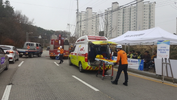 훈련의 기상상황은 누계강설량 30cm의 대설경보 발령의 가상 상황으로 도로통제 및 차량우회로 개설, 제설차량과 견인차량 등이 동원됐으며 기습 폭설로 승용차가 눈길에 미끄러지며 중앙분리대에 충돌한 사고차량 환자의 응급구조 활동과 고립차량에 대한 신속한 구호조치 등이 이뤄지는 실제 훈련 상황을 연출했다.