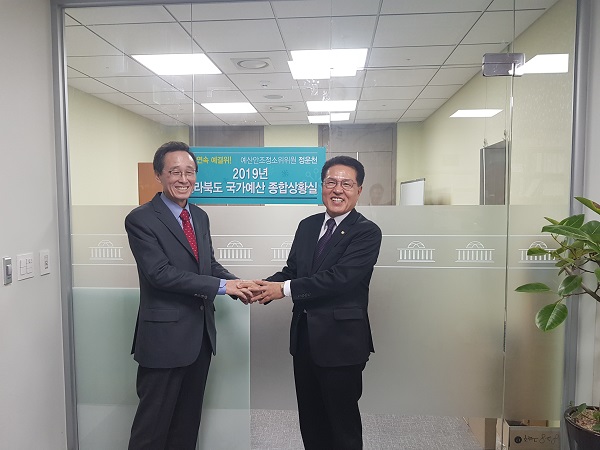 정운천 의원실을 방문한 송하진 지사는 “정운천 의원이 지난 2년 동안 예결위원으로 활동하며 전북 예산 확보에 일등공신이었다”며, “6조 원 초반에 멈춰있던 전북 예산을 2017년에는 2,000억 원, 2018년 3,000억 원 가까이 증액시키는데 큰 역할을 했다”고 강조했다.