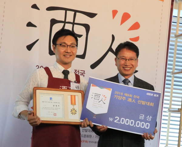 지난 17일 서울혁신파크에서 열린 ‘제9회 전국 가양주 주인 선발대회’에서 남양주시 그린농업대학 소속 전통주연구회 최종대 회원이 ‘금상’을, 김종훈 회장이 ‘장려상’을 수상했다.