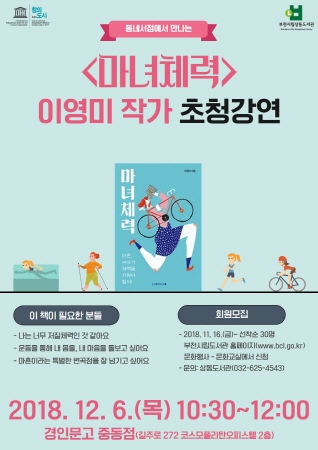 오는 12월 6일 경인문고 중동점에서는 《마녀체력》의 이영미 작가를 만날 수 있다. 시민 30명을 대상으로 하며, ‘마흔, 여자가 체력을 키워야 할 때’라는 부제로 처음 운동을 시작하는 사람과 운동을 통해 삶을 돌보고 싶은 이들에게 도움이 되는 내용으로 구성했다.