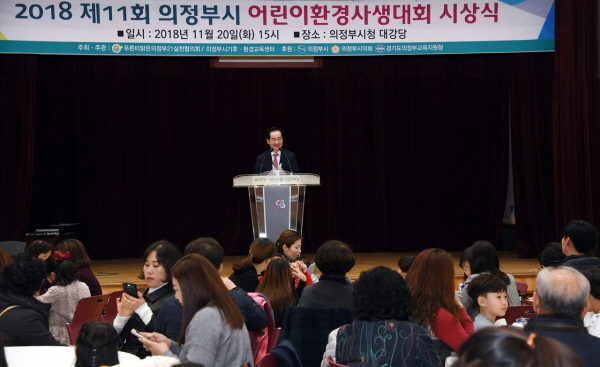의정부시 푸른터맑은의정부21실천협의회가 주최하고 의정부시와 의정부시의회, 경기도의정부교육지원청이 후원한 2018년 제11회 의정부시 어린이환경사생대회 시상식이 지난 20일 어린이 및 학부모 200여 명이 모인 가운데 개최됐다.