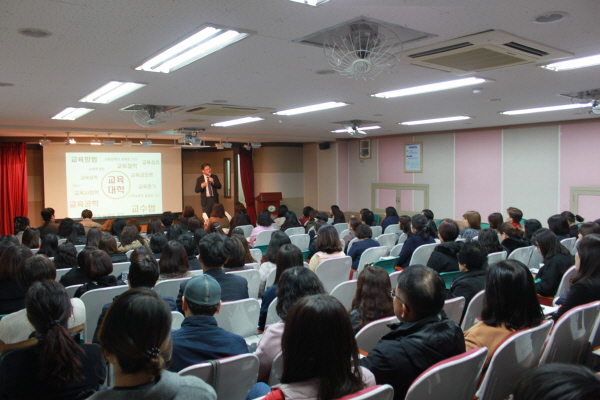 동부교육지원청 초등교육과 원은숙과장은 인사말에서 “이 연수의 목적은 잘하는 학교를 모방하는 것이 아닌 각자의 학교가 처한 환경과 자체의 문제를 파악하여 구성원 모두가 자발적으로 참여하여 행복한 학교 문화 만들기를 위한 방법을 모색할 수 있는 방향과 정보를 제공해 주는 데 목적이 있다. 배움이 즐거운 학교, 동료성을 바탕으로 더불어 배우고 함께 성장하는 행복한 학교문화 만들기를 위한 교사들의 열정에 감사하며 동부교육지원청은 앞으로도 더 좋은 연수를 통해 학교혁신을 적극 지원하겠다.”라고 했다.