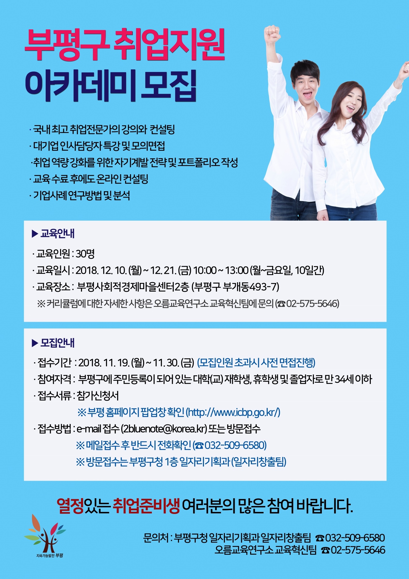 부평구는 오는 30일까지 ‘부평구 취업지원 아카데미’에 참여할 부평지역 청년 30명을 모집한다.
