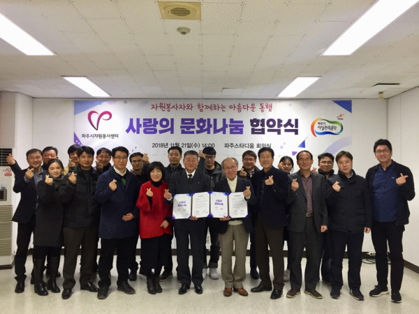 파주시시설관리공단이 지난 21일 파주시자원봉사센터와 ‘사랑의 문화나눔’ 업무협약을 체결했다.